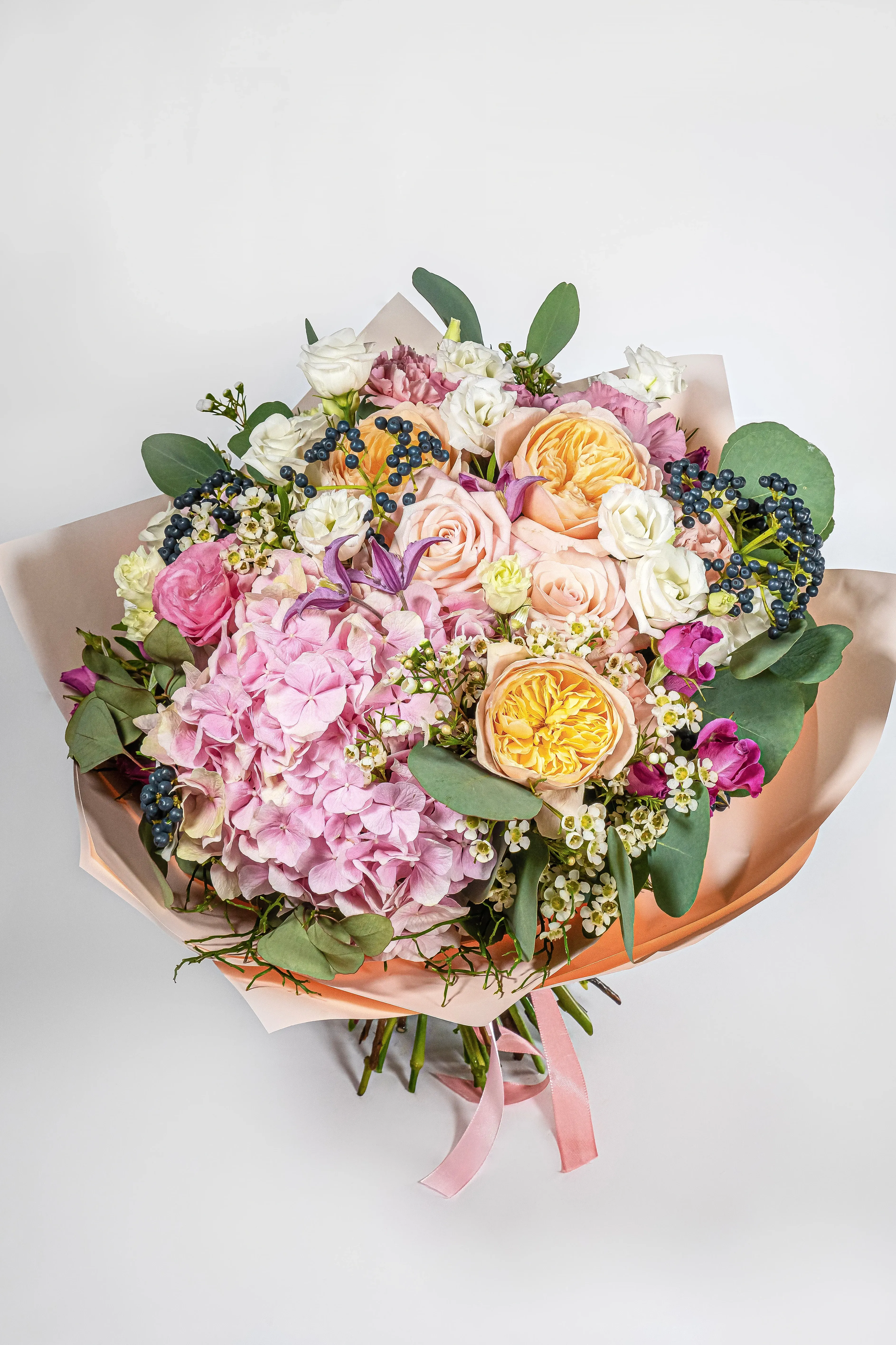- букеты из разных цветов — от подсолнухов до роскошных роз;